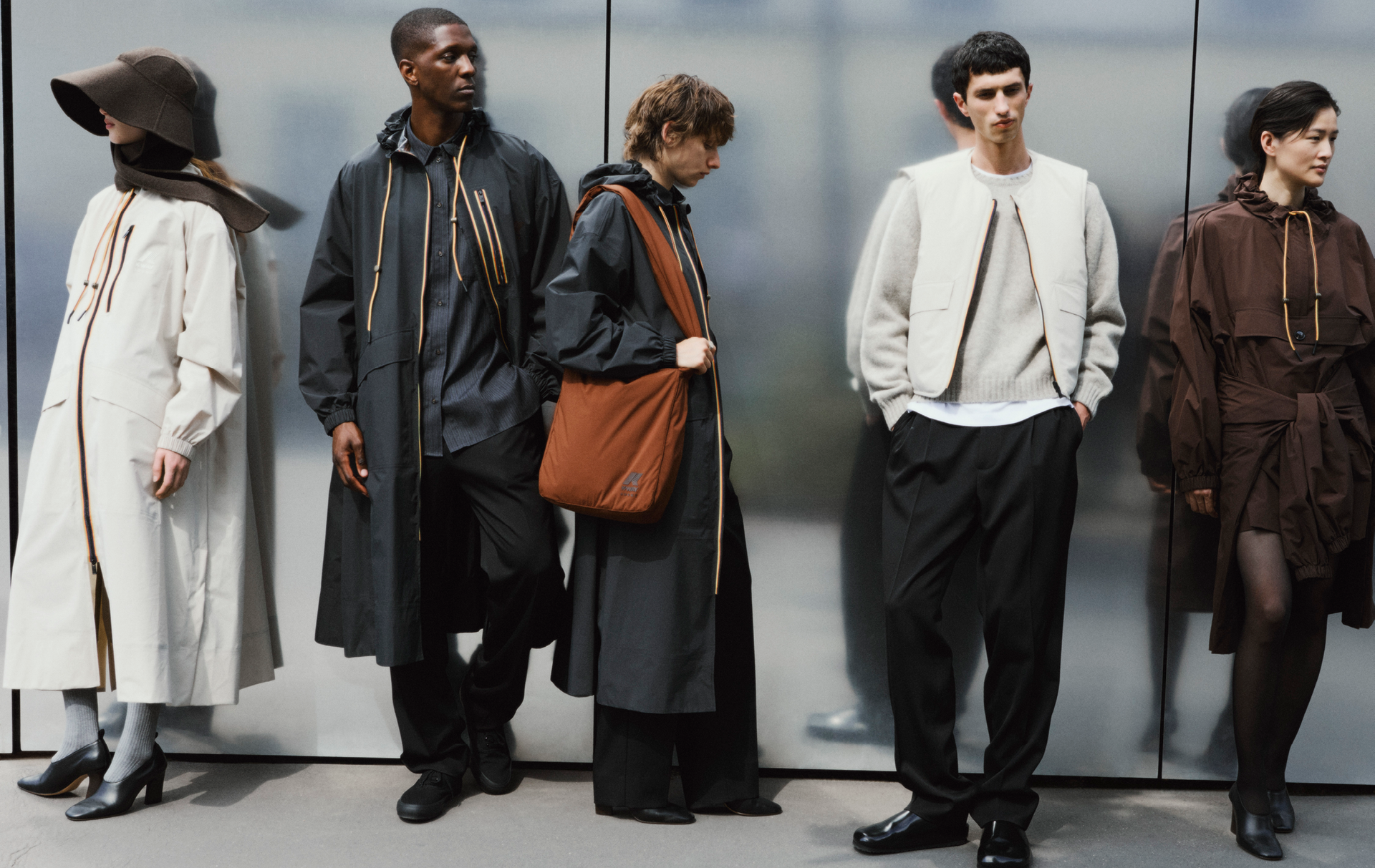 colección : el chaleco sin mangas y reversible Wes, la chaqueta corta con capucha Murray y su bolsillo frontal tipo marinero, el bolso Tuesday y la gorra Sienne. Un vestuario para el día a día que destaca por la precisión de sus líneas, la flexibilidad de su tejido técnico y una sutil gama de colores.