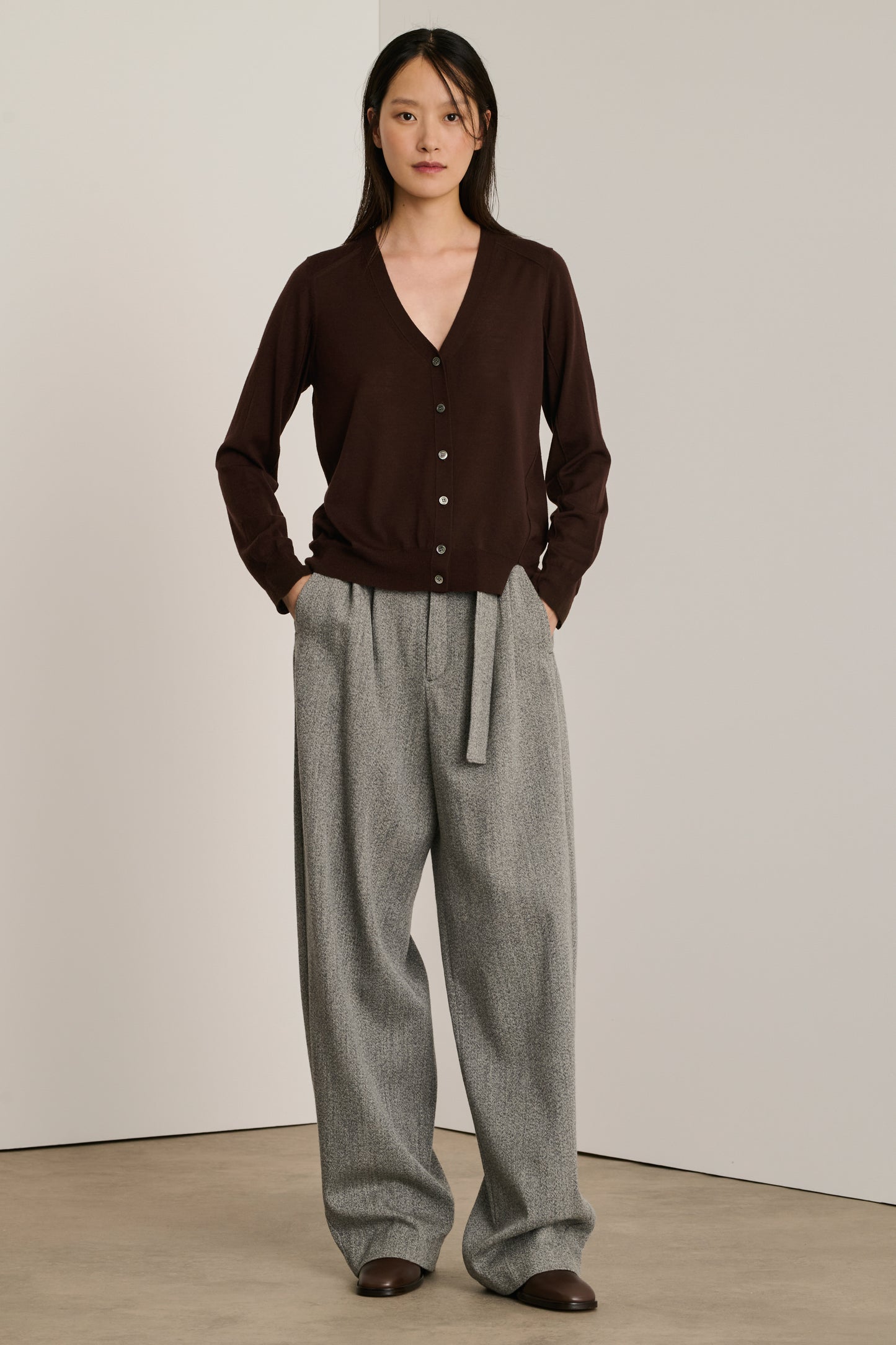 Cárdigan fino asimétrico chocolate