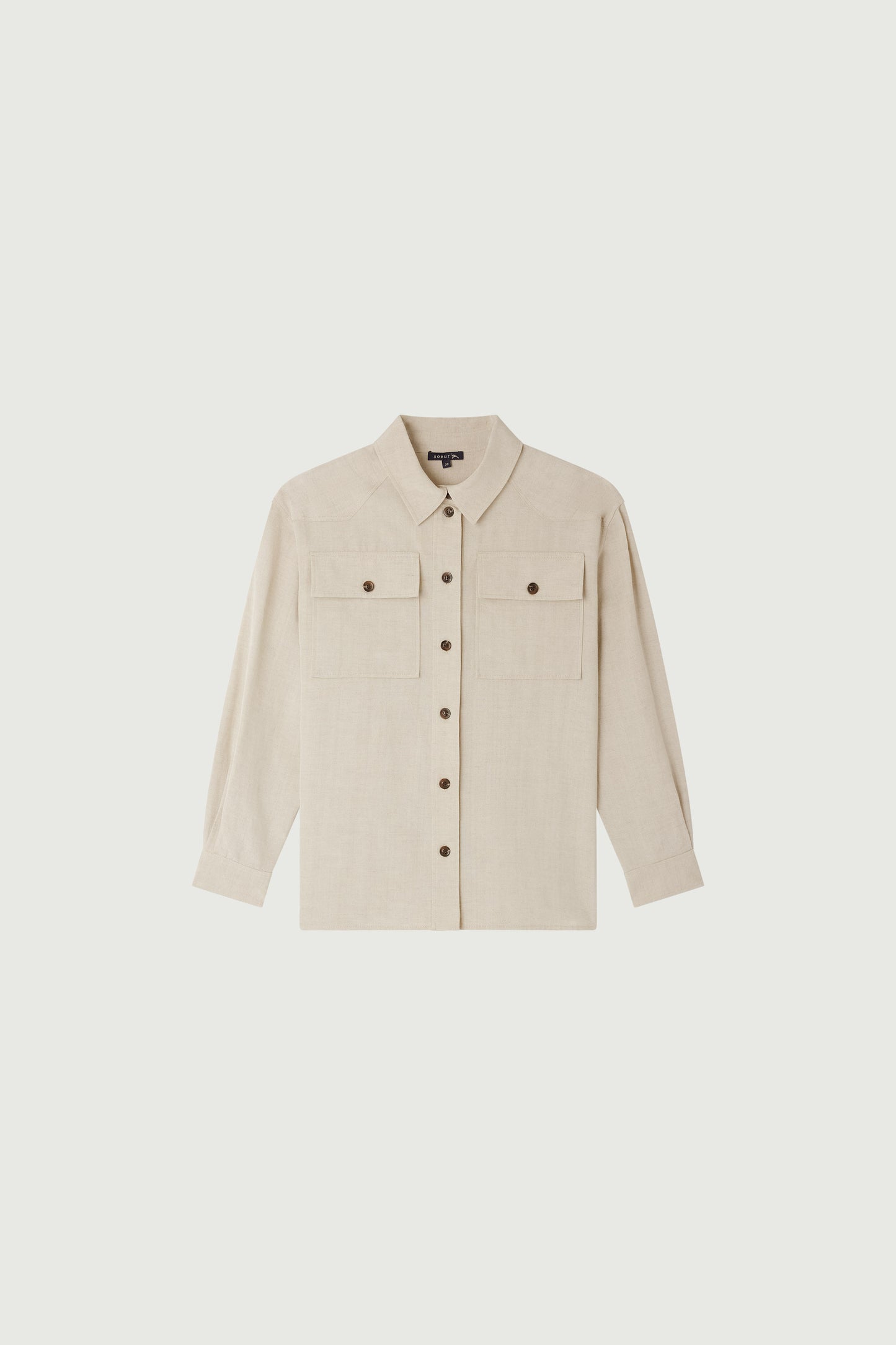BRUXELLES es una camisa de lino flameado. Su corte recto y amplio asegura un confort máximo. Con un toque safari gracias a sus dos bolsillos de parche en el pecho, es ideal para un look a la vez elegante y desenfadado, combinado con un pantalón del mismo tejido.