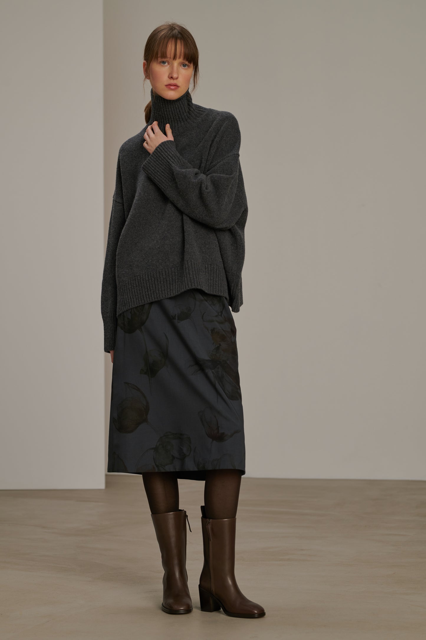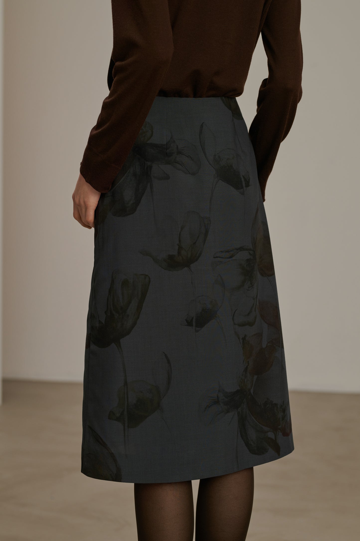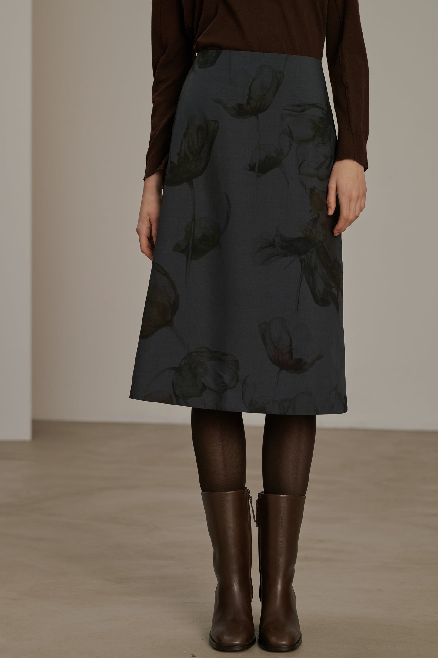 VALET es una falda de tela de lana estampada. Perfecta para un look moderno y sofisticado, esta falda se distingue por su estampado único que añade una nota de creatividad a tus conjuntos.
