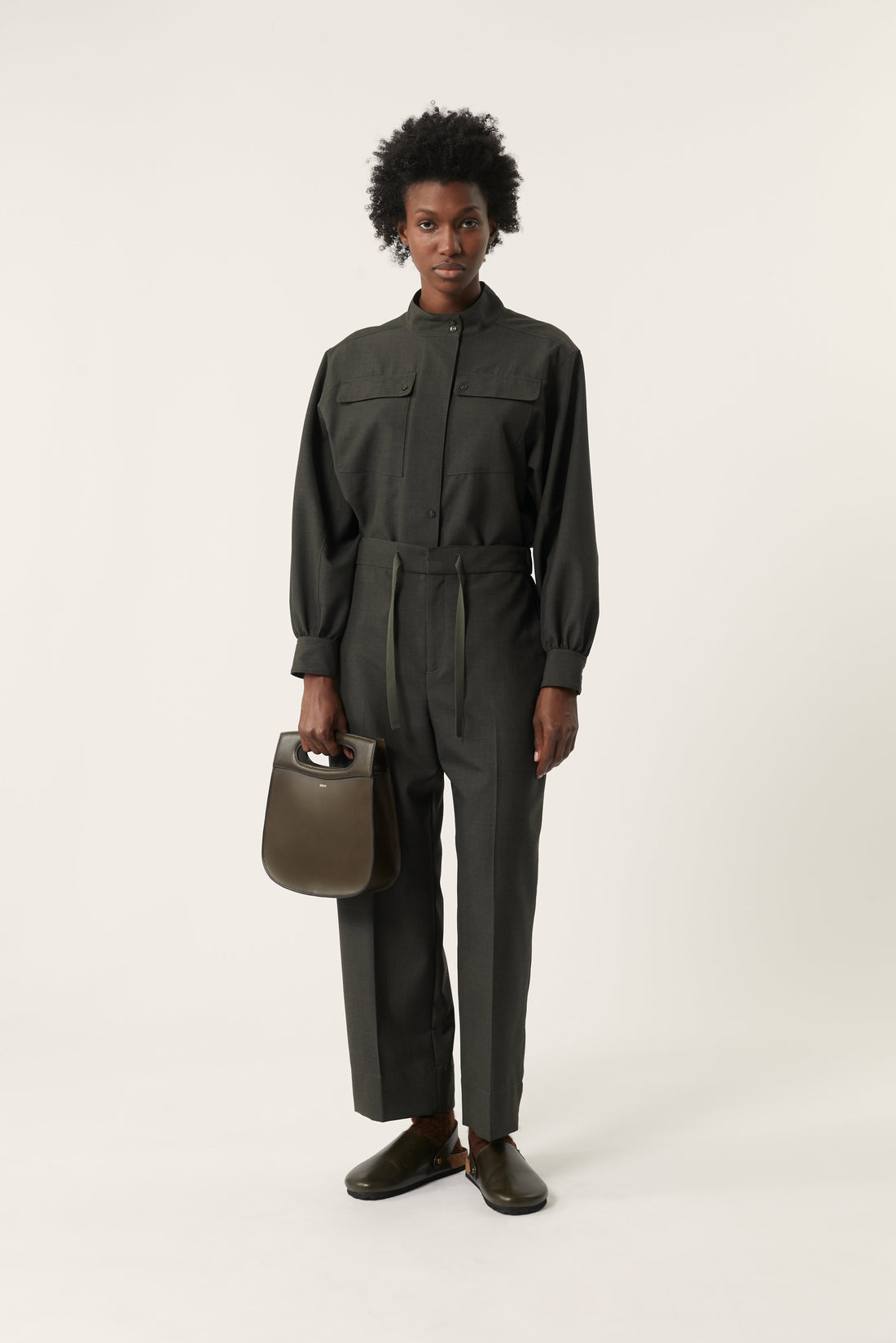 pantalã“n sarajevo Pantalones de lana jaspeada caqui