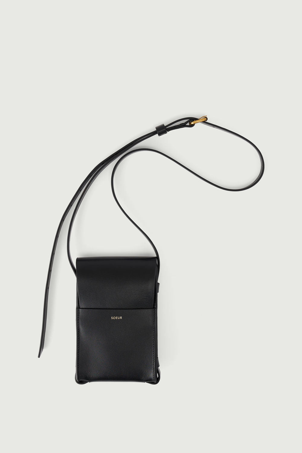 bolsillo charly Portateléfono de cuero liso con bandolera