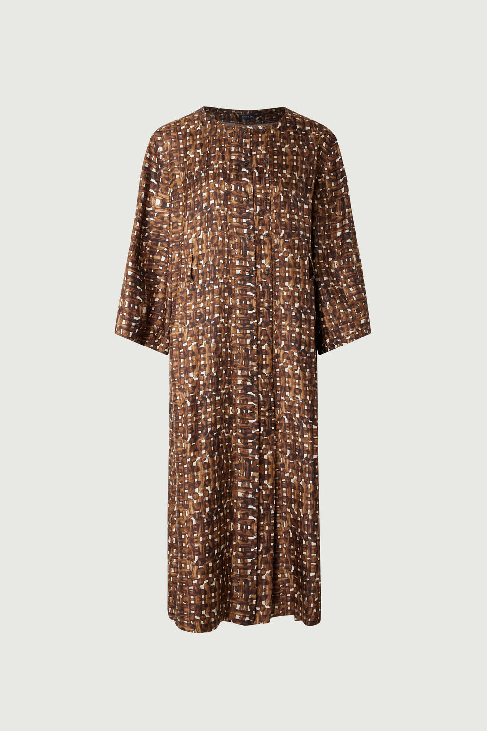Vestido en sarga de seda carbón/crudo